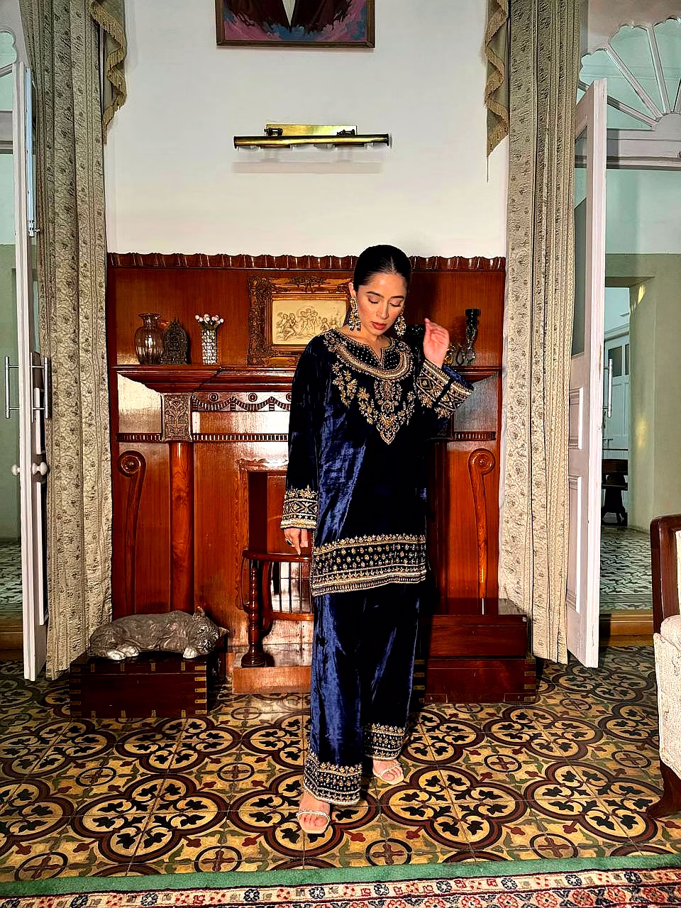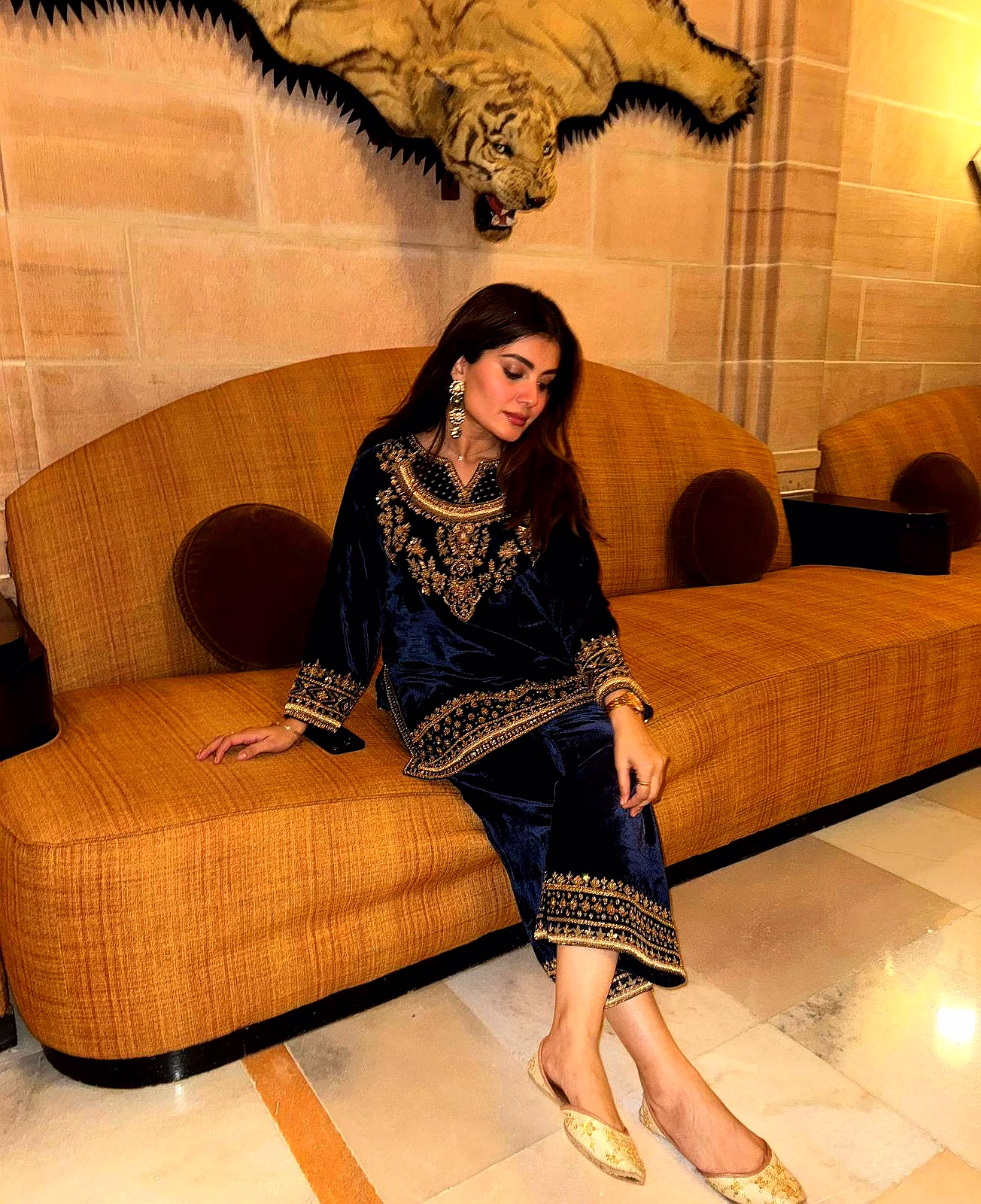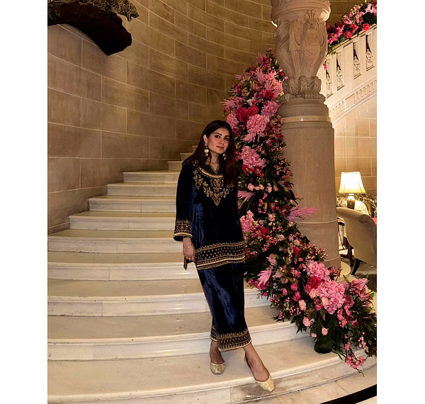 The deep blue shade reflects royal sophistication, making it an ideal choice for women who love classic colors with a modern festive touch.