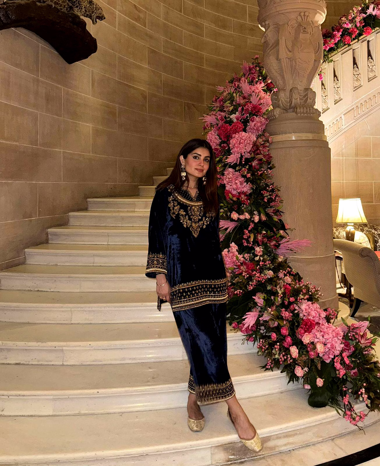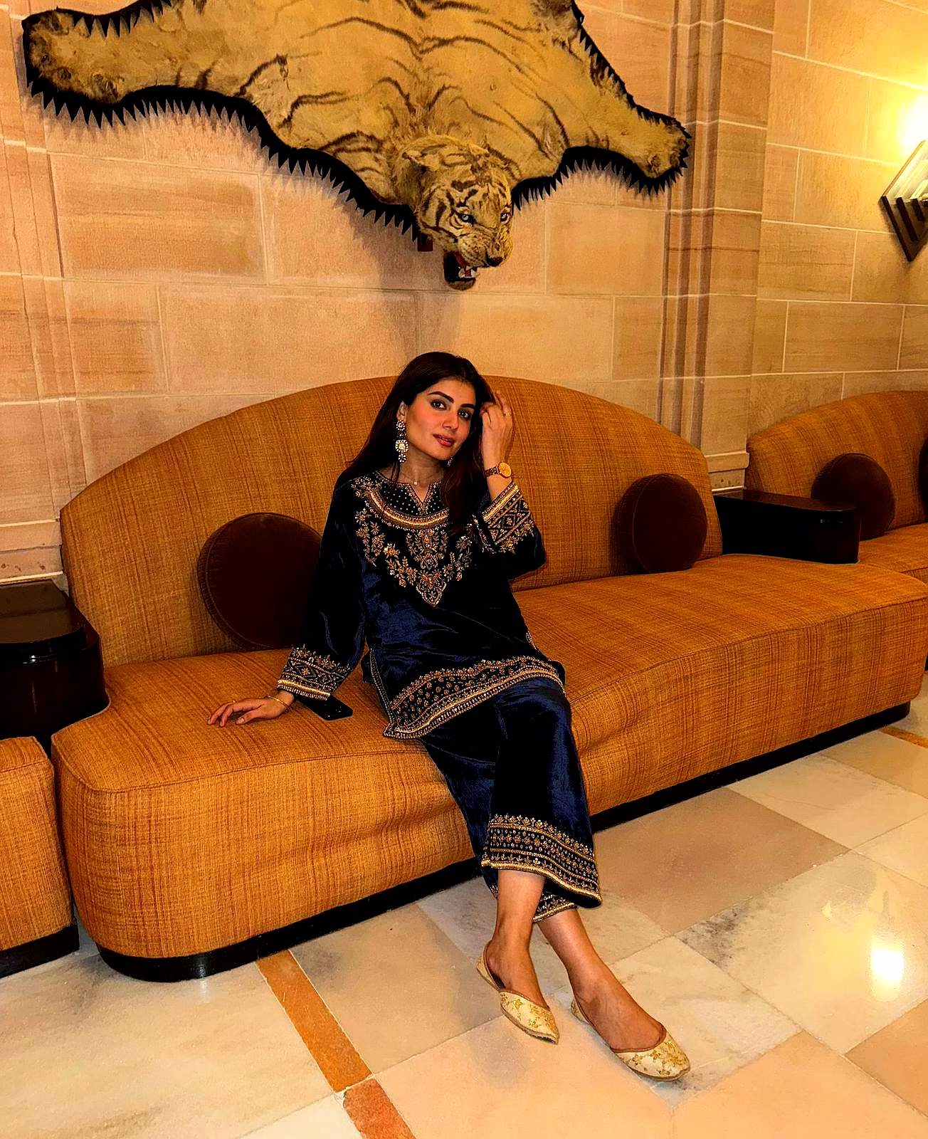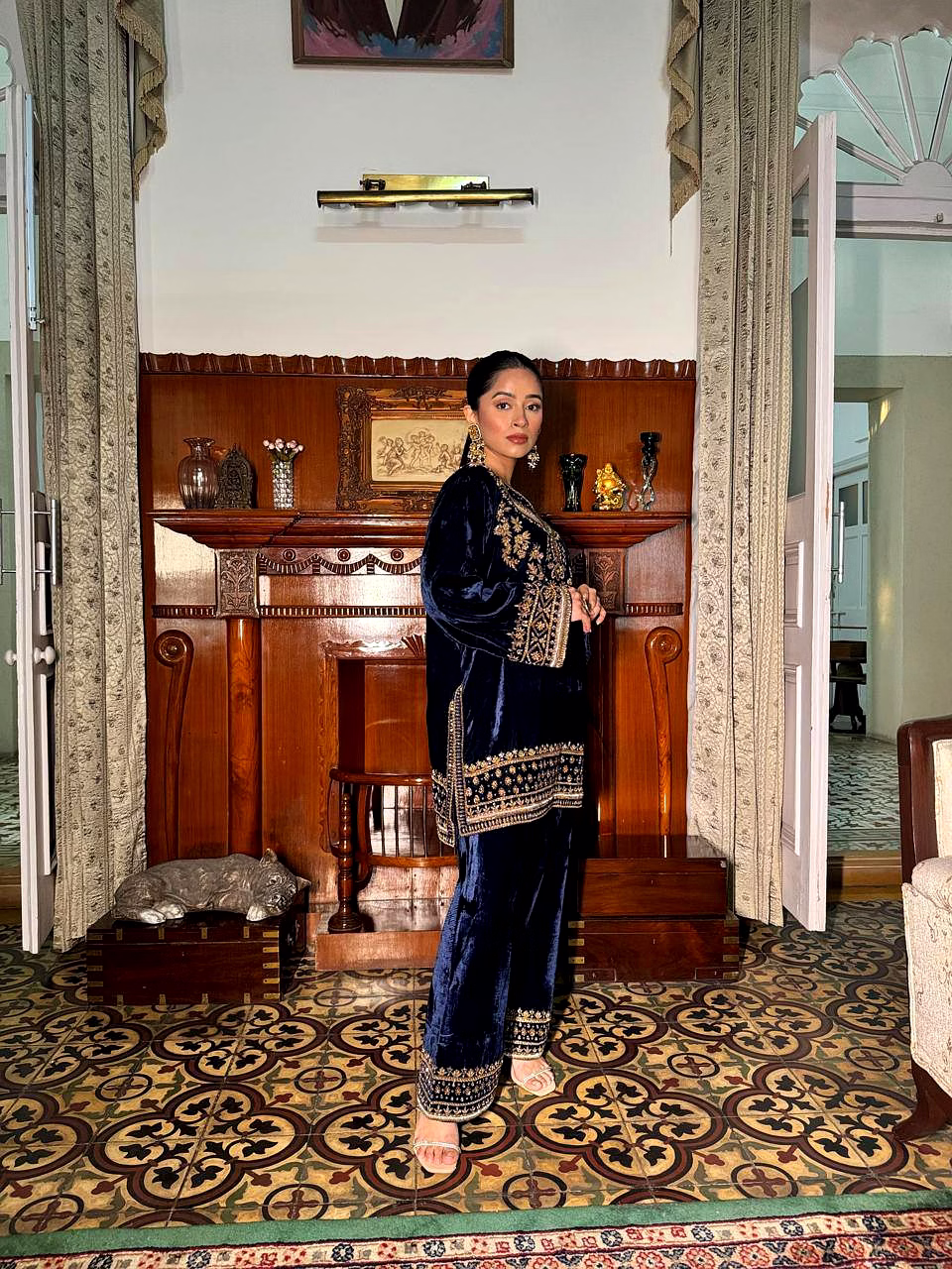 The deep blue shade reflects royal sophistication, making it an ideal choice for women who love classic colors with a modern festive touch.