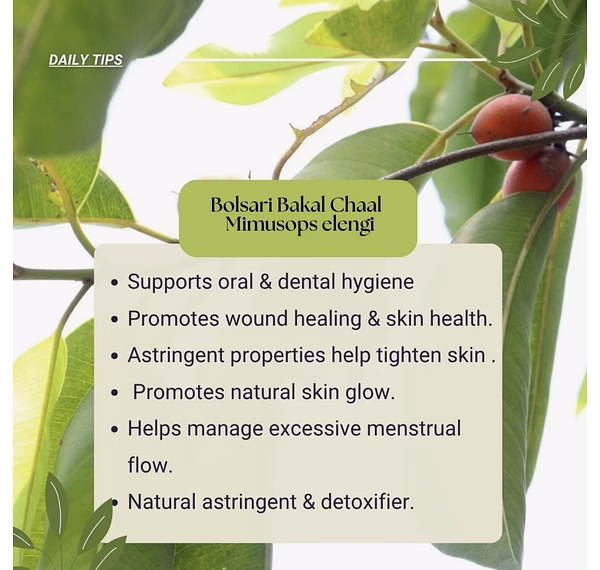 Bakul Chaal (also known as Mimusops Elengi or Indian Medlar Tree bark) is a time-tested herb , widely used for its oral care, skin healing, and reproductive health benefits. Its bark is valued for its astringent, cooling, and healing properties and is often included in traditional remedies for gum disorders, wound healing, and gynecological health.