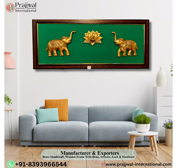 Product Name: Brass Elephant with Lotus Wall Hanging Frame
