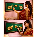 Brass Elephant with Lotus Wall Hanging Frame – 36×16 Inches