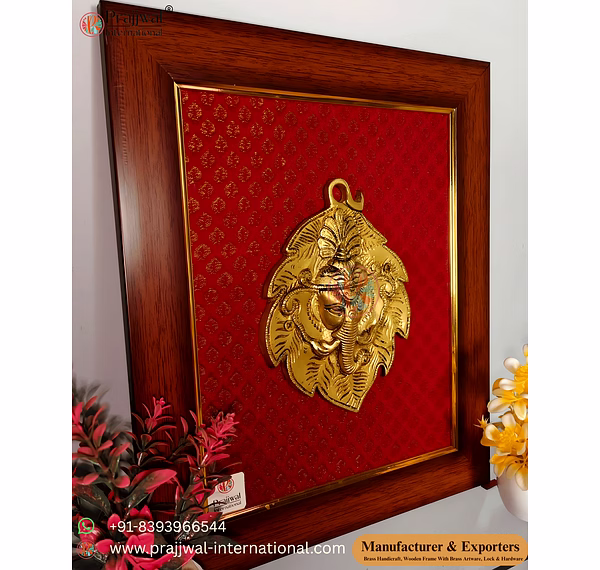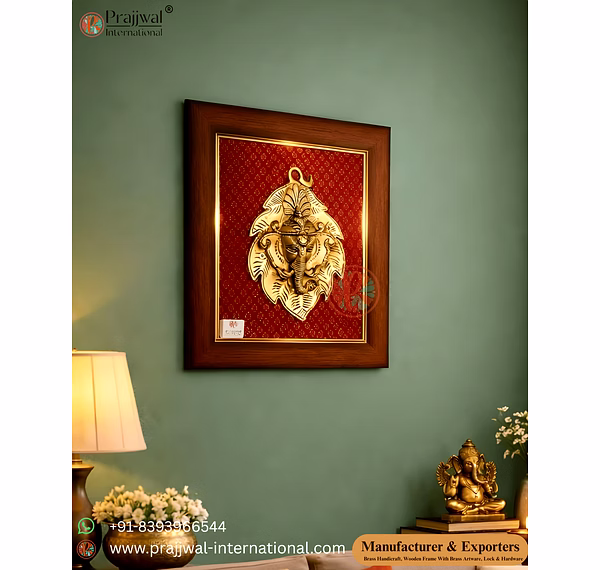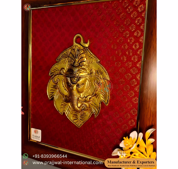 Brass Ganesha Wall Hanging, Ganesha Leaf Frame, Vastu Ganesha Decor, Brass Ganesha Wall Art, Spiritual Wall Decor, Pooja Room Wall Hanging, Handcrafted Brass Decor, Brass Handicrafts Manufacturer, Prajjwal International