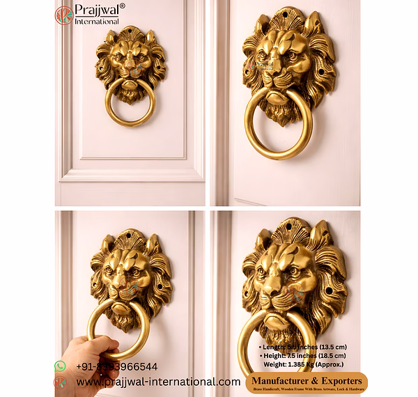 #BrassDoorKnocker #LionDoorKnocker #AntiqueDoorHardware #BrassHardwareExporter #IndianHandicraftsExporter #LuxuryDoorDecor #VintageDoorKnocker #HomeDecorExport #BrassArtIndia #DoorKnockerDesign #ArchitecturalHardware #HandmadeBrass #ExportQuality #BulkSupplier #WholesaleHandicrafts #MetalCraftIndia #InteriorDecorExport #HeritageDecor #MadeInIndia #PrajjwalInternational