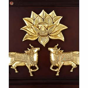 Celebrate purity, devotion, and divine symbolism with this beautifully designed Brass Lotus with Cows artwork mounted in a 12-inch wooden frame. The lotus symbolizes spiritual awakening, while the cow represents sacredness and abundance in Indian tradition. Ideal for puja rooms, wall decor, and devotional gifting.