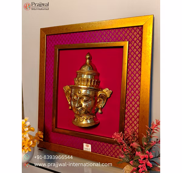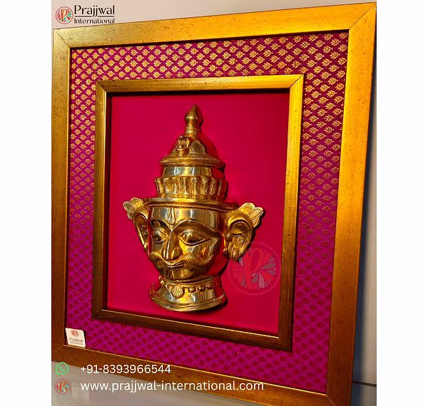 ๐๏ธ Brass Shiv & Parvati Mukhalingam Wall Hanging Frame โ Divine Wall Dรฉcor | Premium Manufacturer & Exporter