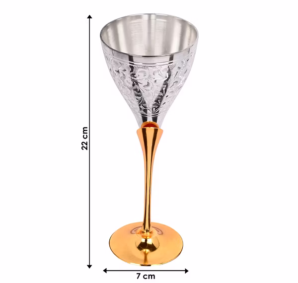 Wine glass.it is made of brass material.This glass is useful for alcoholic drink, decor home bar and Kitchen decor.Serving the Drink in this beautiful glass and enjoy the wine party with your friends and family. Gold plating on high quality brass makes it highly durable and washable.Pure Brass Champagne Flutes/ Glasses perfect for special evenings, parties, toasting etc.Exclusively Handmade and Hand Carved. It is proven some that some beverages tastes best when served in Copper/ Brass Glasse.
