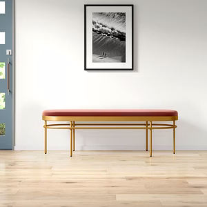 It measures just 43'' W, so it can easily fit at the foot of your bed, in an entryway, or just about any space in your home.