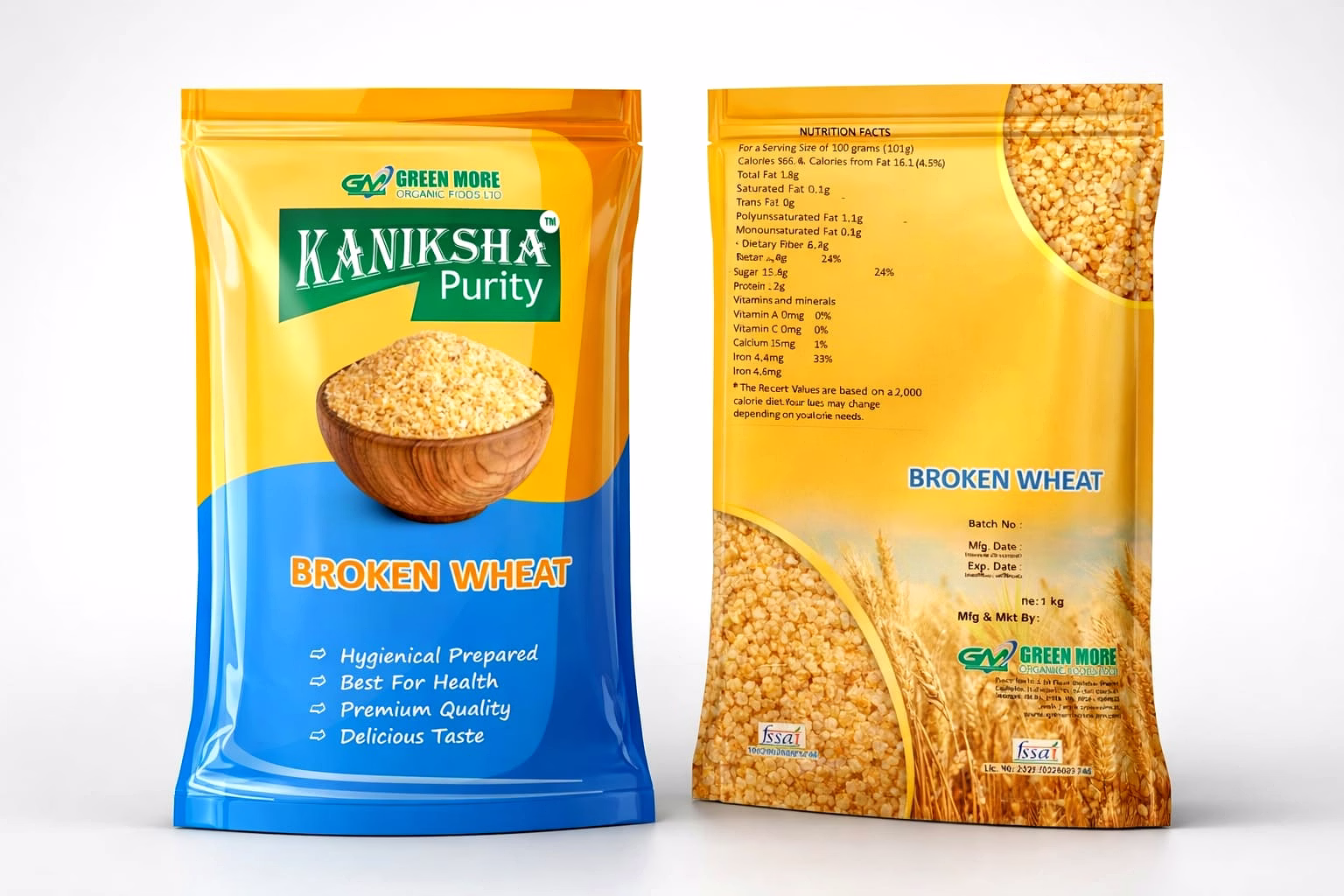 Kaniksha Purity Broken Wheat is made from carefully selected premium wheat grains and hygienically processed to retain natural nutrition and taste. Rich in dietary fiber and essential minerals, it is ideal for healthy daily meals like daliya, porridge, and upma.