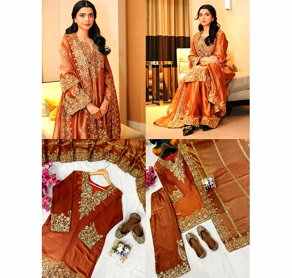 Step into timeless elegance with the rich brown tone of the suit that exudes sophistication and refinement. The luxurious fabric drapes gracefully, providing comfort and class, making it perfect for festive gatherings and special events.