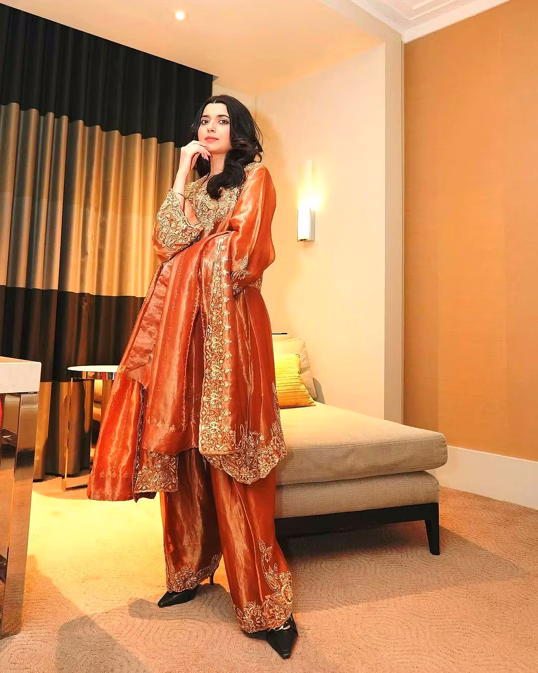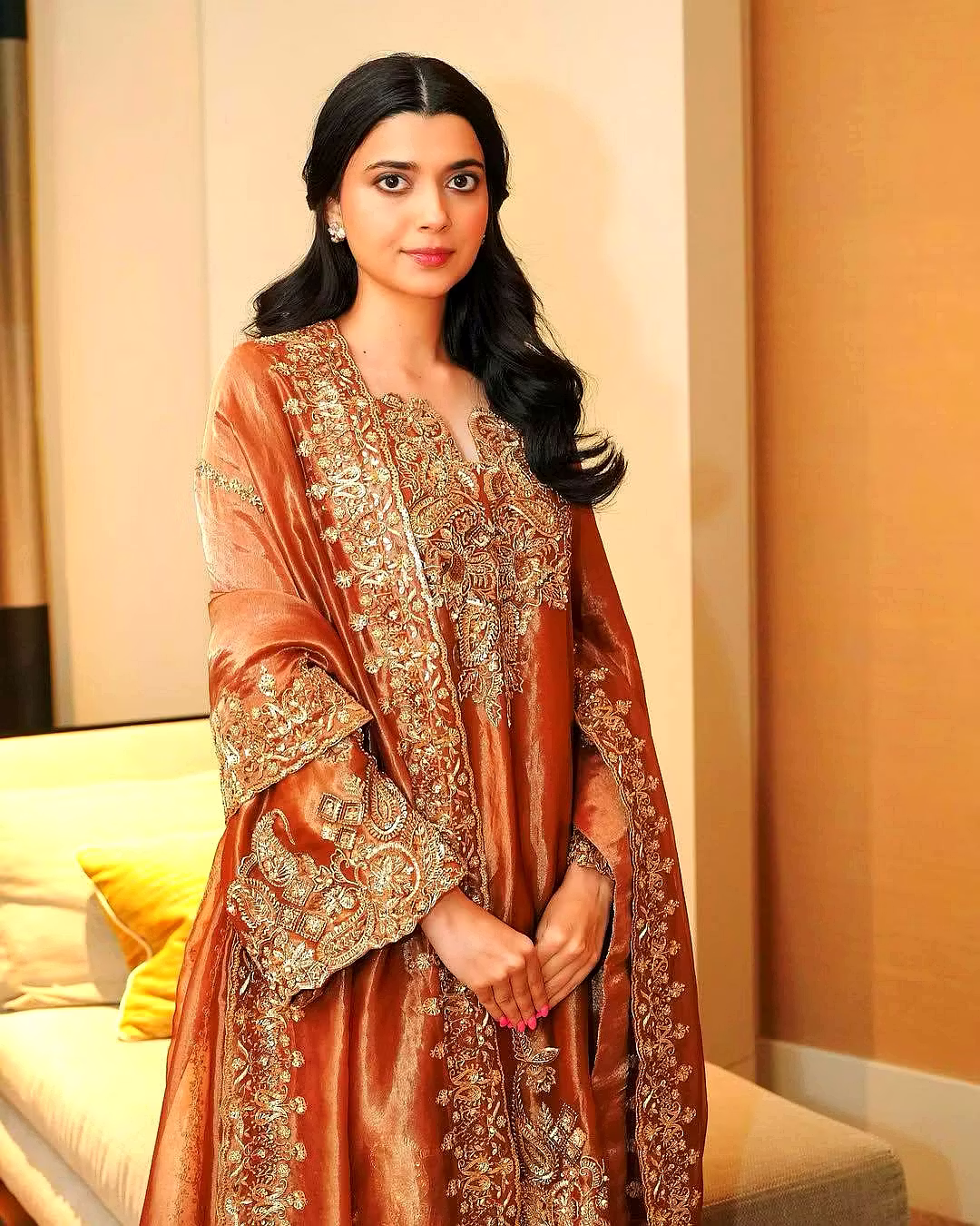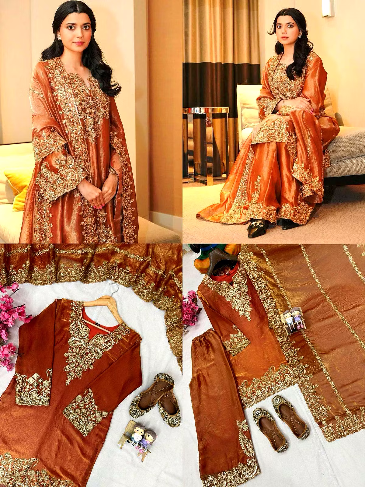 From festive celebrations to casual luxury outings, this Brown Fendi Silk Suit is a versatile masterpiece that effortlessly elevates your style. Be it an office party, family function, or a lunch date, this designer outfit ensures you shine with designer-inspired sophistication.