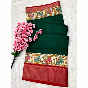 Introducing the stunning BSY Dola Silk Saree- a true masterpiece that is sure to capture the hearts of any saree lover. Made with pure Mangalgiri print, this saree features a self Kalamkari print all over the body, which gives it a unique and traditional touch. The Kasab Zari Jacquard border pattern adds a regal charm to the overall look of the saree. Crafted with the utmost care and precision, this saree is a perfect blend of comfort, elegance, and style. It comes with an unstitched blouse that features a self Kalamkari print all over - making it the perfect companion to the saree. Whether it's a formal event, a wedding, or a casual gathering, this saree is sure to make you stand out from the crowd. Its intricate design and impeccable quality make it a timeless piece that can be passed down from generation to generation. Wear it with a pair of traditional jhumkas and bangles to complete the look. It's easy to drape and comfortable to wear, ensuring that you look your best while feeling comfortable. In summary, the BSY Dola Silk saree is a must-have for anyone who values elegance, tradition, and style. With its intricate design, high-quality fabric, and impeccable craftsmanship, this saree is sure to delight you and everyone around you. Get yours today and experience the magic of this beautiful saree!