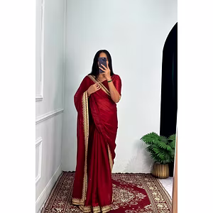 Introducing our exquisite Saree, a masterpiece that effortlessly combines tradition and contemporary design. Made from high-quality Burbary fabric with Shibori print, this Saree is a testament to craftsmanship and elegance. The embroidery Zari work Patta with cut work border adds a touch of opulence, making this Saree truly stand out. Measuring 5.5 meters, it provides ample fabric to create stunning drapes and showcase the intricate details. But the beauty doesn't stop there. Our Saree comes with a fully stitched blouse made from luxurious 9000 velvet fabric. The embroidery work on the front and back adds a regal charm, making you the center of attention at any occasion. With a size that fits up to 42 inches, it ensures a comfortable and flattering fit. What sets our Saree apart is the attention to detail in every aspect, from the choice of fabric to the meticulous embroidery. Each piece is crafted with utmost care to ensure the highest quality and durability. The result is a Saree that not only looks stunning but will also last for years to come. Elevate your style and make a statement with our Saree. Whether it's a wedding, festive celebration, or any special event, this Saree will effortlessly enhance your beauty and leave a lasting impression. Embrace the timeless elegance and grace that our Saree offers, and be prepared to turn heads wherever you go. Indulge in luxury, adorn yourself with our Saree, and experience the joy of wearing a piece of art. Don't miss out on this opportunity to own a truly exceptional and captivating Saree. Embrace tradition with a contemporary twist and make a lasting impression with our Saree.