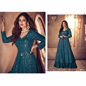 Indulge in pure luxury with the Butterfly Heavy Net Saree, designed to make you the center of attention at any event. This saree is crafted with a premium quality net fabric that drapes flawlessly, highlighting your every move with effortless grace. The heavy sequence embroidery adds a touch of glamour to your look, setting you apart from the crowd. The intricately designed Zalar work elevates the saree, providing a rich and textured look that is sure to impress. The semi-stitched design guarantees a perfect fit, ensuring both comfort and style. Perfect for weddings, parties, and festive occasions, the Butterfly Heavy Net Saree is a timeless masterpiece that exudes elegance and meticulous craftsmanship. Make a statement and turn heads with this exquisite saree.