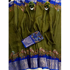 Introducing our latest saree collection, featuring our candy cotton silk saree with a jequrd border. This elegant saree is perfect for any occasion, whether it be a wedding or a formal event. The saree is lightweight, weighing only 500 grams, so you can wear it comfortably for long hours. The saree comes with the same border design as the original, giving it a classic and timeless look. The running blouse is also included, and looks exactly like the one in the photo. The saree is made of high-quality candy cotton silk, which is known for its soft texture and durability. Get ready to turn heads with this stunning saree that combines traditional design with modern elegance.