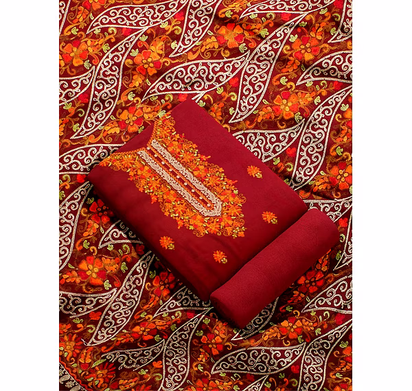 Unstitched pashmina salwar suit with Dupatta is elevated with Fine Kashmiri ZARI Embroidery Threadwork *SET OF 2PCS
