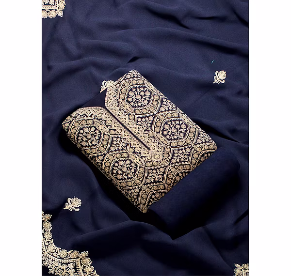 CASMIR WOMEN NAVY ZARI EMBROIDERY PASHMINA STOLE Combine UNSTITCHED SUIT & SALWAR (sara101)