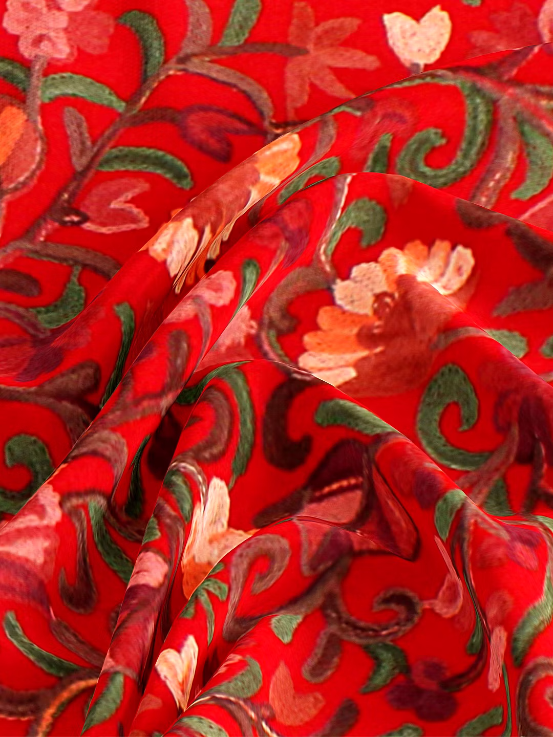 CASMIR Women RED & RED, Green Embroidered STOLE (S902)