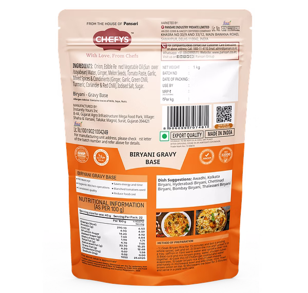 Ideal for importers, wholesalers, and distributors seeking reliable supply of chefys - biryani gravy base - 1kg from trusted sources.