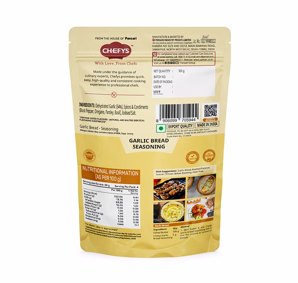 Ideal for importers, wholesalers, and distributors seeking reliable supply of chefys garlic bread seasoning - 500gm from trusted sources.