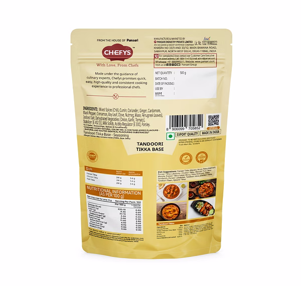 Ideal for importers, wholesalers, and distributors seeking reliable supply of chefys tandoori tikka base - 500gm from trusted sources.