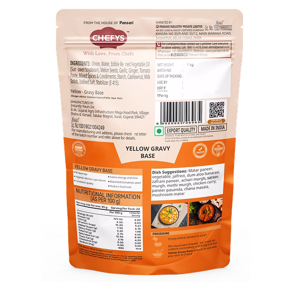 Quality Ingredients: Chefys Yellow Gravy Base is made with top-quality ingredients, ensuring the best taste for your dishes.