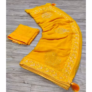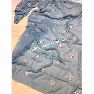 Indulge in the luxurious allure of our Chiffon Saree With Thread Work. The delicate threadworkadds a touch of sophistication, making you stand out in any event.