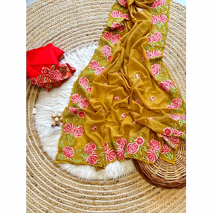 Elevate your style with our exquisite Chiffon Saree With Thread Work. This saree embodies elegance and charm, perfect for any special occasion.
