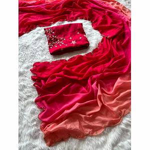 Introducing our most loved Chinon Peding Rich Cutt Dana Handwork Border saree, a premium designer collection with pure fabric. This exquisite saree is a true testament to elegance and sophistication. Crafted with utmost precision, our Chinon Peding Rich Cutt Dana Handwork Border saree is a masterpiece in itself. The intricate handwork border adds a touch of glamour and allure, making it a perfect choice for any special occasion. Made with pure fabric, this saree is incredibly lightweight and comfortable to wear. Its soft and flowing texture drapes beautifully, enhancing your natural grace and charm. You will feel like a queen as you glide through the room, turning heads with every step. The beauty of this saree lies in its attention to detail. The cutt dana handwork on the border adds a touch of opulence, making it a truly unique and standout piece. The intricate designs and meticulous craftsmanship showcase the skill and talent of our artisans. Not only does this saree look stunning, but it also offers versatility. The included Banglory Silk blouse complements the saree perfectly and can be styled in various ways to suit your personal taste. With this saree, you can effortlessly create different looks, whether it's for a traditional ceremony or a contemporary event. Indulge yourself in the luxury of our Chinon Peding Rich Cutt Dana Handwork Border saree and make a statement wherever you go. With its premium quality, exquisite design, and impeccable craftsmanship, this saree is a true reflection of your impeccable taste and style. Experience the allure and elegance of our Chinon Peding Rich Cutt Dana Handwork Border saree and be the center of attention. Elevate your wardrobe with this timeless piece and let your style speak for itself.