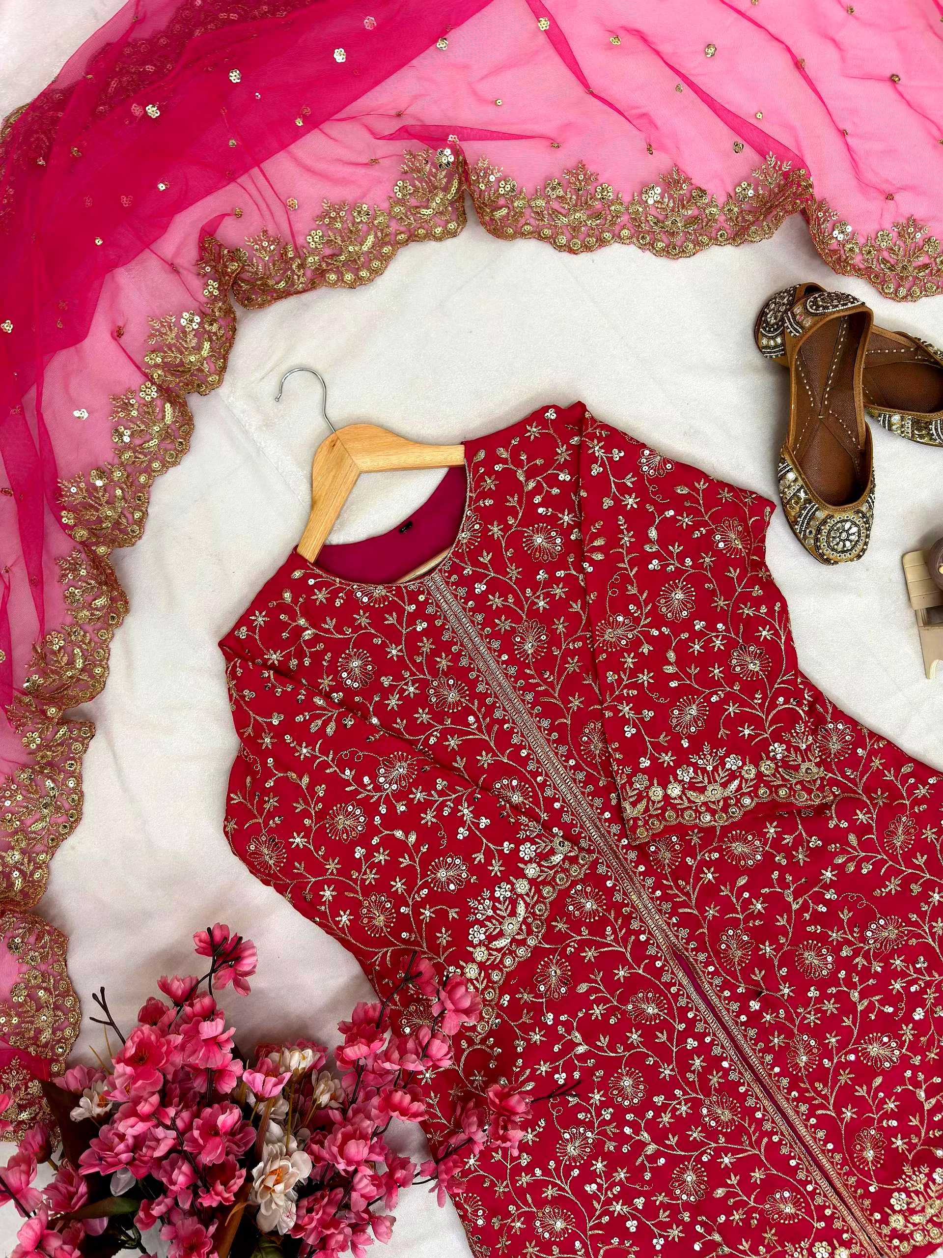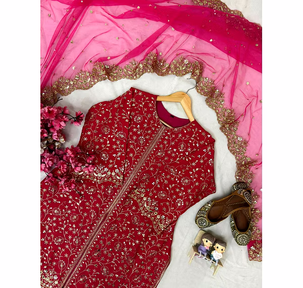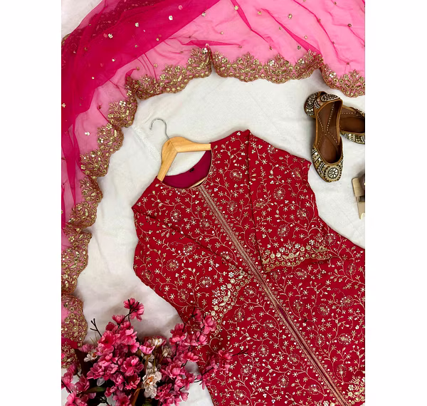 Indulge in the sheer beauty of chinon silk with our meticulously crafted kurti set. Designed to exude timeless elegance, this ensemble embodies grace and sophistication.