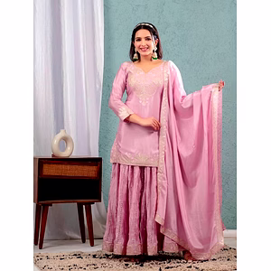Complete Ensemble: The package includes a fully stitched gown, a fully stitched palazzo, and one dupatta.