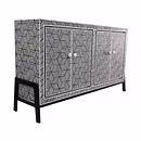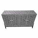 The tessellating shapes with black bone inlay; it can be seen as stars or stepped cubes depending on perspective. It sits proudly on an iron base lending it solidity and poise.