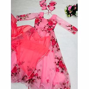 Introducing our stylish and eye-catching gown set! Made from pure chinon fabric with a colorful print and intricate handwork, this set is sure to turn heads. The butter creap pent fabric offers a comfortable fit, while the chiffon dupatta adds a touch of elegance. Available in sizes S to XXXL, this set is perfect for any occasion. The unique selling point of this gown set lies in its vibrant colors and attention to detail. With its attractive look and high-quality fabric, this set is a must-have for fashion-forward individuals. Upgrade your wardrobe with our stylish gown set and make a statement wherever you go.
