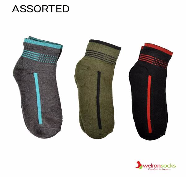 combed cotton socks-251 combine style, comfort, and functionality for unmatched performance. Made with 80% combed cotton, they offer a luxuriously soft touch against your skin. The addition of 17% polyamide ensures durability, while 3% elastane provides a secure and flexible fit. Perfect for everyday activities, these ankle-length socks are designed to keep your feet cool, dry, and comfortable. Whether you're running errands, hitting the gym, or relaxing at home, combed cotton socks-251 Socks are your ultimate companion.