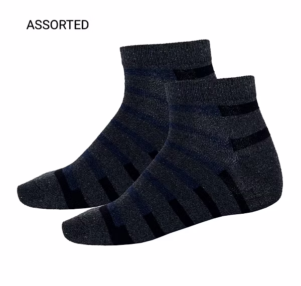 combed cotton socks-399 combine style, comfort, and functionality for unmatched performance. Made with 80% combed cotton, they offer a luxuriously soft touch against your skin. The addition of 17% polyamide ensures durability, while 3% elastane provides a secure and flexible fit. Perfect for everyday activities, these ankle-length socks are designed to keep your feet cool, dry, and comfortable. Whether you're running errands, hitting the gym, or relaxing at home, combed cotton socks-399 Socks are your ultimate companion.