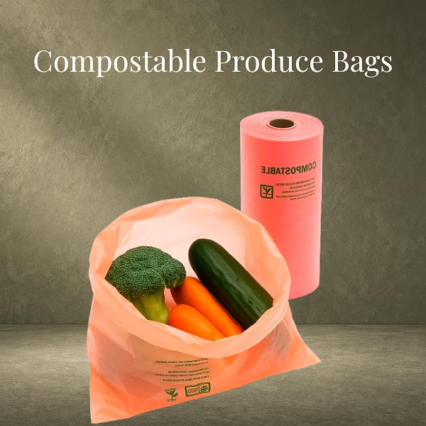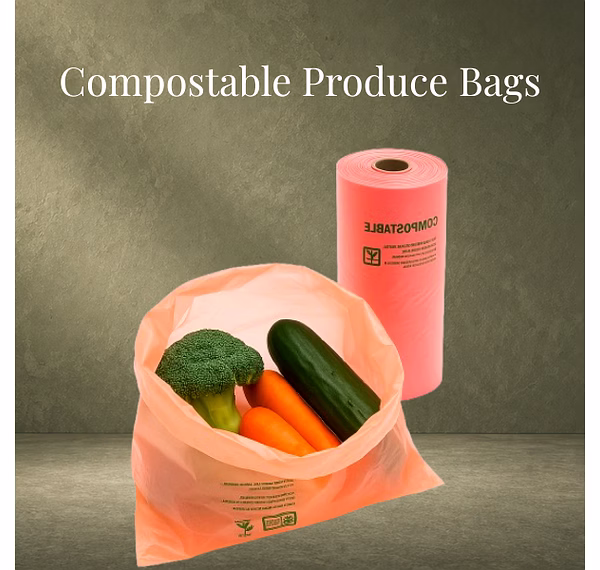 Compostable fresh produce bags designed for eco-friendly packaging of fruits and vegetables. Suitable for bulk supply, these biodegradable bags offer a sustainable alternative to plastic for retail, supermarkets, and food distribution.