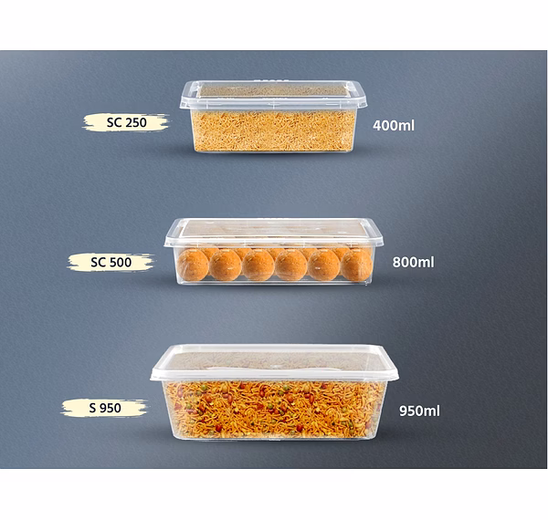 > CD850/2 premium 2 compartiments rectangulaires : Volume 850 ml - Dimensions 224 x 154 x 43 mm - Poids 45 g - Couleur noire ou transparente