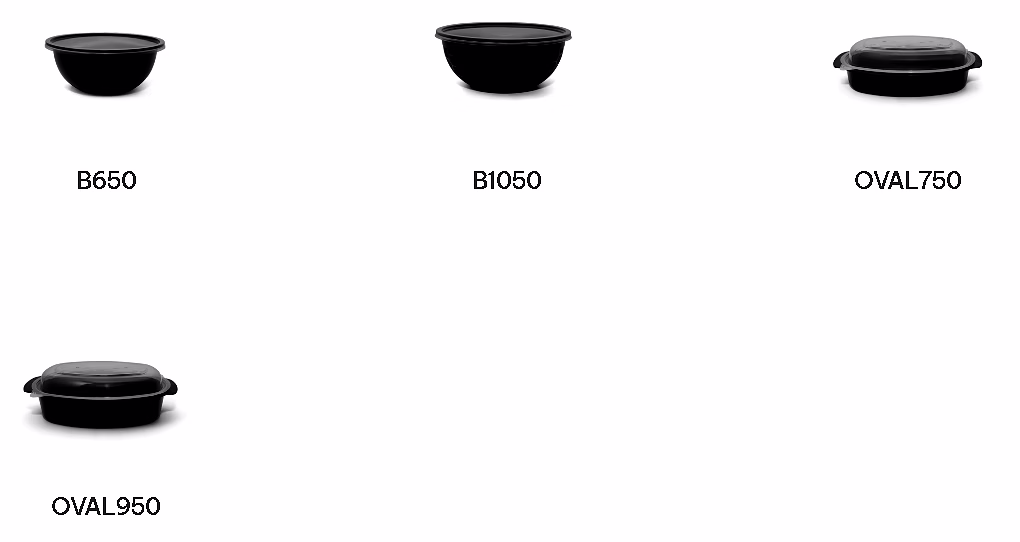 > Oval950 couvercle dôme : Volume 950 ml - Dimensions 226 x 155 x 75 mm - Poids 37,5 g - Couleur noire ou transparente