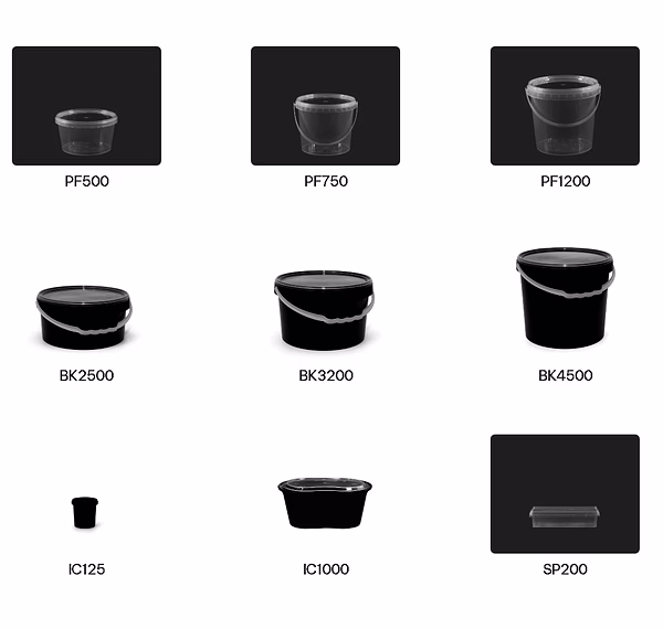 > IC125 pot crème glacée : Volume 125 ml - Dimensions Ø 68,2 x 69 mm - Poids 9,8 g - Couleur noire ou transparente