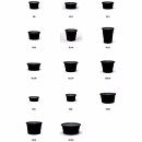 > R16 rond : Volume 500 ml - Dimensions Ø 122 x 64 mm - Poids 17,7 g - Couleur noire ou transparente