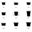 > R8 rond : Volume 250 ml - Dimensions Ø 122 x 37 mm - Poids 15 g - Couleur noire ou transparente