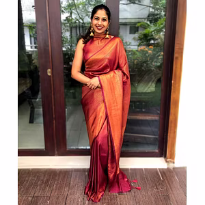 Introducing the Copper Silk Saree Set with Contrast Blouse and Pallu - a stunning ensemble that exudes elegance and grace. Crafted with meticulous attention to detail, this saree set will make you the center of attention at any occasion. Made from high-quality silk, the Copper Silk Saree Set drapes beautifully and feels luxuriously smooth against the skin. The rich copper color adds a touch of sophistication, while the contrasting blouse and pallu enhance the overall aesthetic appeal. With its unique design, this saree set effortlessly combines tradition with modernity. The contrast blouse adds a contemporary twist, making it perfect for both formal and casual events. The intricate patterns on the pallu add an element of charm and make it a truly eye-catching piece. Not only does this saree set make a bold fashion statement, but it also offers unparalleled comfort. The lightweight fabric allows for easy movement, ensuring that you stay comfortable throughout the day or night. Whether you're attending a wedding, a festive celebration, or a social gathering, this saree set will make you feel confident and stylish. The Copper Silk Saree Set is not just a piece of clothing; it's a work of art. Each saree is meticulously handcrafted by skilled artisans, ensuring the highest level of quality and attention to detail. By purchasing this saree set, you are not only investing in a timeless piece, but also supporting traditional craftsmanship. Make a lasting impression with the Copper Silk Saree Set with Contrast Blouse and Pallu. Embrace the beauty of Indian culture while showcasing your unique sense of style. Elevate your wardrobe and captivate the crowd with this exquisite saree set.