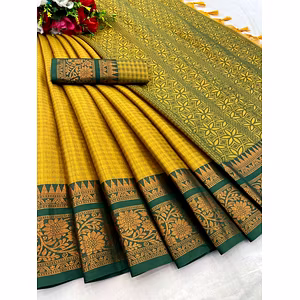 Introducing our latest addition to the collection - the pure mercerised copper silk saree, complete with a matching blouse and pallu. This stunning piece is the epitome of elegance and sophistication, ideal for any formal occasion. Crafted from the finest quality mercerised copper silk, this saree is both soft and durable, ensuring longevity and comfort. The unique copper finish provides a subtle yet eye-catching shimmer, making it the perfect choice for those who want to stand out from the crowd. Measuring 5.5 meters in length and complete with a matching blouse and pallu, this saree is versatile and can be worn in a variety of traditional styles. The contrast matching blouse adds an extra touch of luxury, while the contrast pallu adds a pop of color and texture. Whether you're attending a wedding, engagement ceremony, or formal dinner, this saree is sure to turn heads. Its simple yet sophisticated design is perfect for any occasion and will flatter any body type. Invest in this pure mercerised copper silk saree today and experience the ultimate in luxury and style. With its unique selling points and undeniable beauty, this saree is a must-have for anyone looking to make a statement.