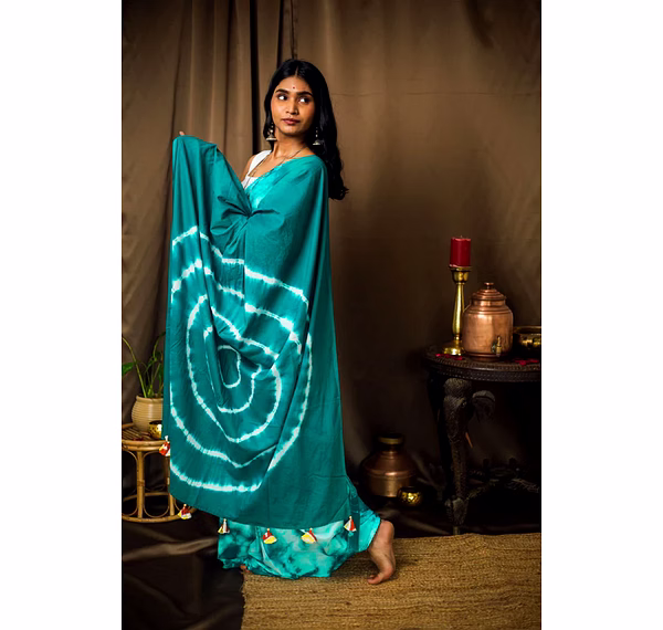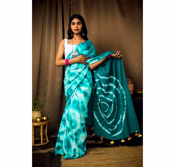 Cotton Mul Tie Dye Saree Mint Masala