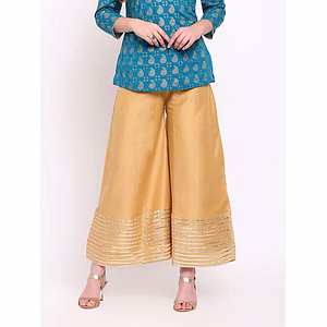 Introducing our Silk Pant with Pearl Bead Detail—a luxurious and versatile addition to your wardrobe that combines the elegance of silk with the comfort of premium cotton lining.Key Features:Fabric: Made from luxurious silk with a 100% premium cotton lining, these pants offer a smooth, elegant exterior with soft, breathable comfort on the inside.USP: Pearl Beads: The delicate pearl bead embellishments add a touch of sophistication and elegance, making these pants a standout piece for any occasion.Length: 36+ for a flattering and comfortable fit that suits various body types.Elevate your style with our Silk Pant with Pearl Bead Detail, where luxury and comfort come together in a beautifully crafted piece. Perfect for adding a refined touch to both formal and semi-formal looks. Designed for international appeal, this top delivers both elegance and export-ready quality.