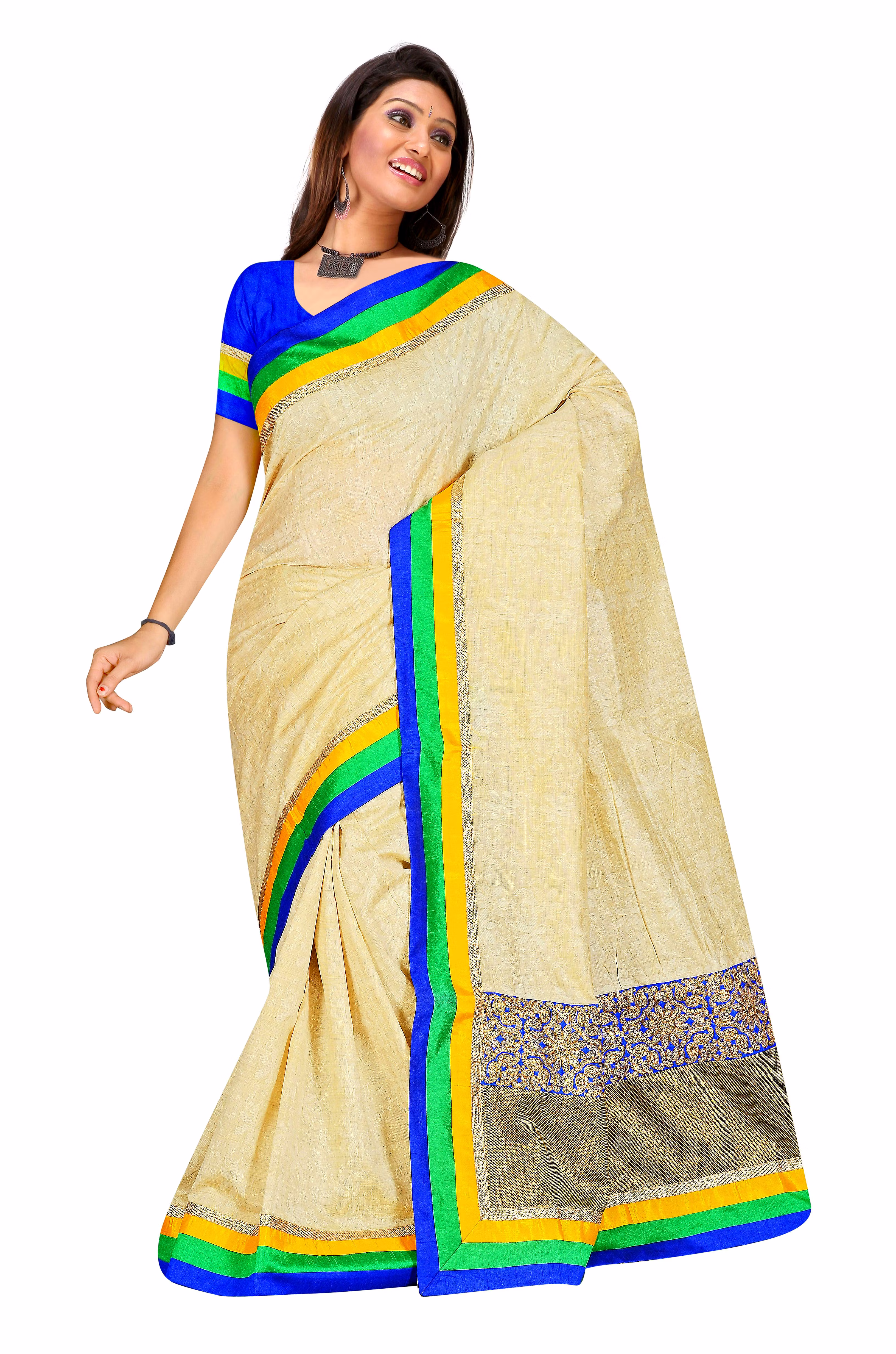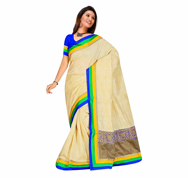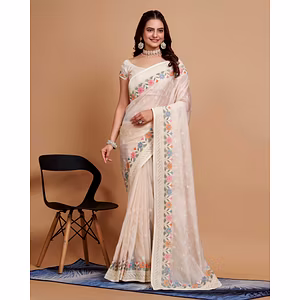 Cream Bhagalpuri Silk Embroidered Saree 777