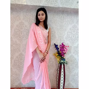 Introducing our latest addition to the ethnic wear collection - the Crush Faux Georgette Lehenga Set. This exquisite set features a free size lehenga that can comfortably fit up to 44 inches and has a 4-meter flair with 6-meter fabric, providing a graceful and voluminous look. The lehenga is made from high-quality crush faux georgette fabric, ensuring comfort and durability. The inner lining is made from micron cotton, allowing for breathability and ease of wear. The set also includes a fully stitched blouse made from faux georgette fabric that can fit up to 44 inches, providing a comfortable, yet snug fit. The blouse is designed to complement the intricate and beautiful handwork that is done on the printed mono banglory koti. The handwork includes Zari, Kashmiri Mirror, and Diamond Stone, making it a unique and exquisite piece that is perfect for special occasions. At a height of 40 inches, this lehenga set is perfect for women of all heights. The Crush Faux Georgette Lehenga Set is a great option for weddings, parties, and other events where you want to look your best. With its unique design, intricate handwork, and high-quality materials, this lehenga set is sure to make you stand out and turn heads. In summary, our Crush Faux Georgette Lehenga Set is a must-have for any woman who wants to look and feel beautiful. The set's unique design, high-quality materials, and exquisite handwork are sure to make you the center of attention at any event. Get yours today and experience the elegance and sophistication of this beautiful lehenga set!