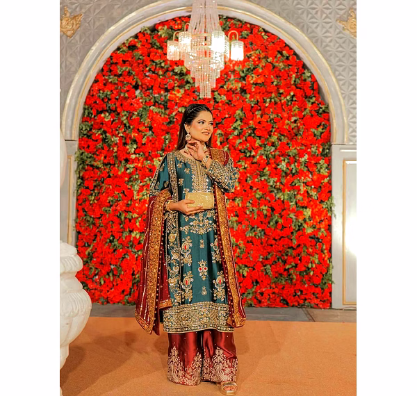 This Cyan Chinon Silk Kurti is a versatile addition to your wardrobe, effortlessly transitioning from daytime casual to evening chic. Its elegant design and meticulous craftsmanship ensure you stand out with sophistication wherever you go.