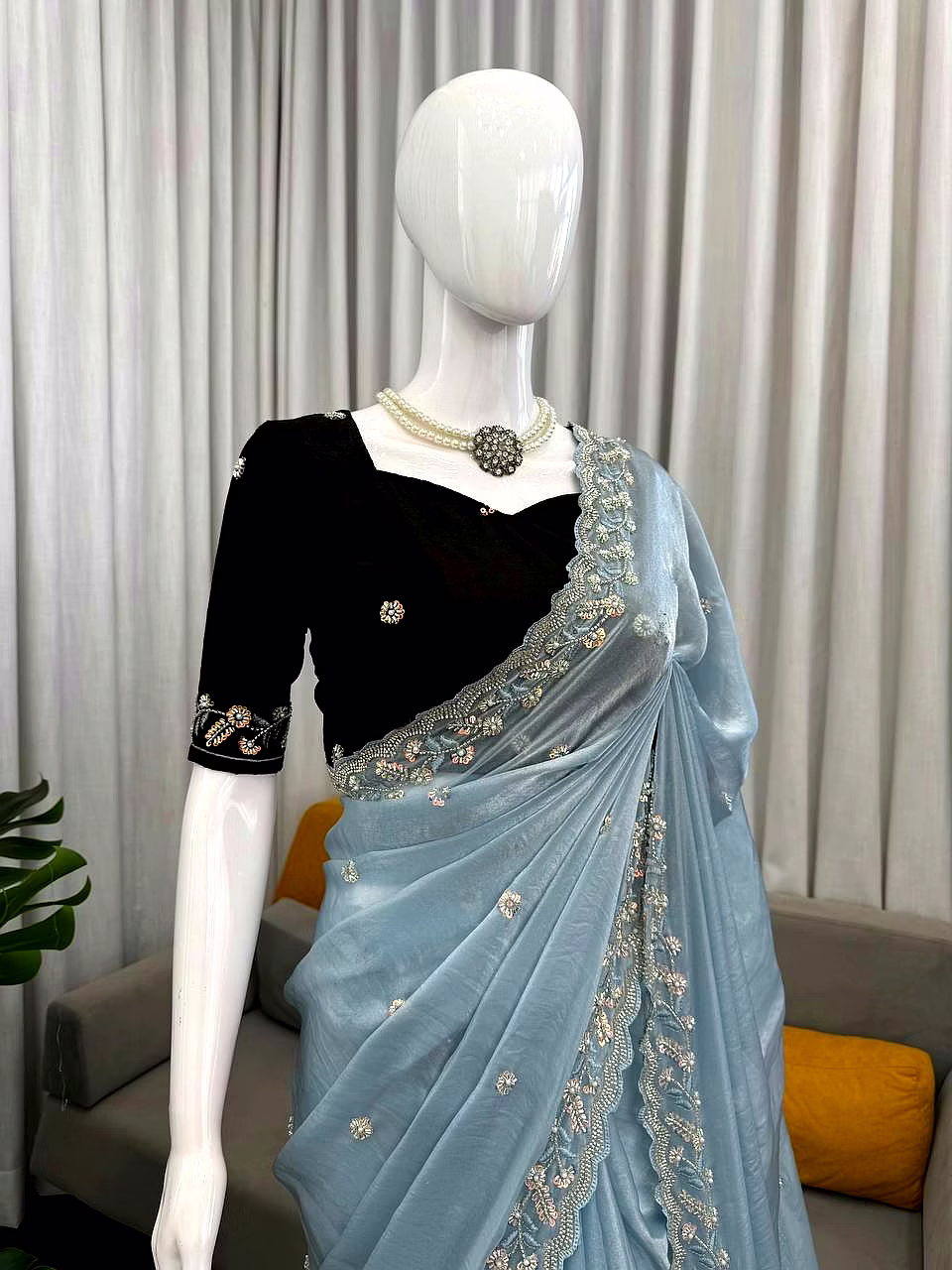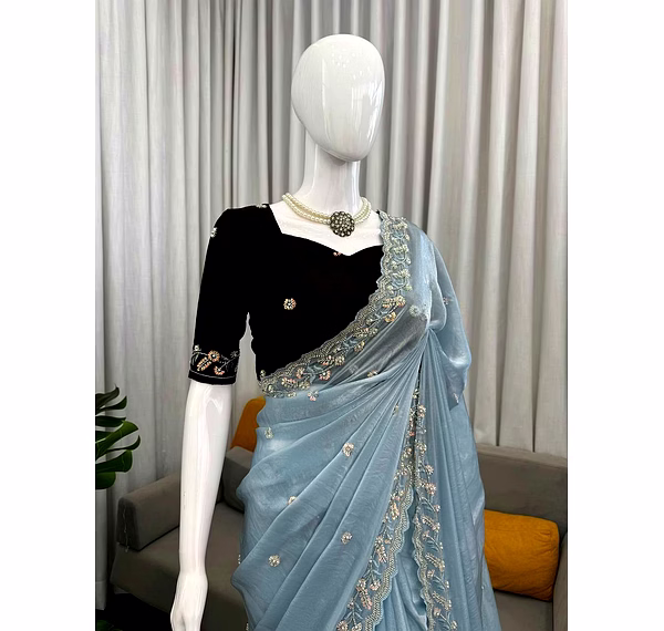 Perfect for weddings, receptions, festive parties, and special occasions, this saree is a must-have addition to every fashion-forward woman’s ethnic wardrobe.