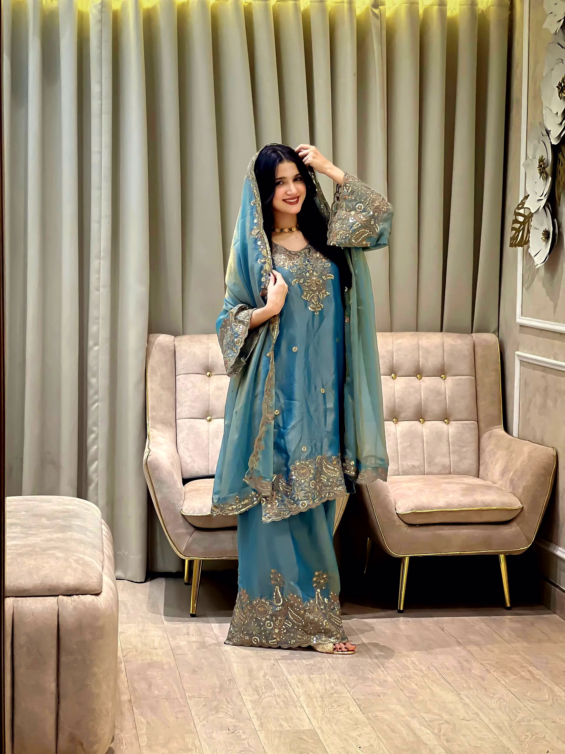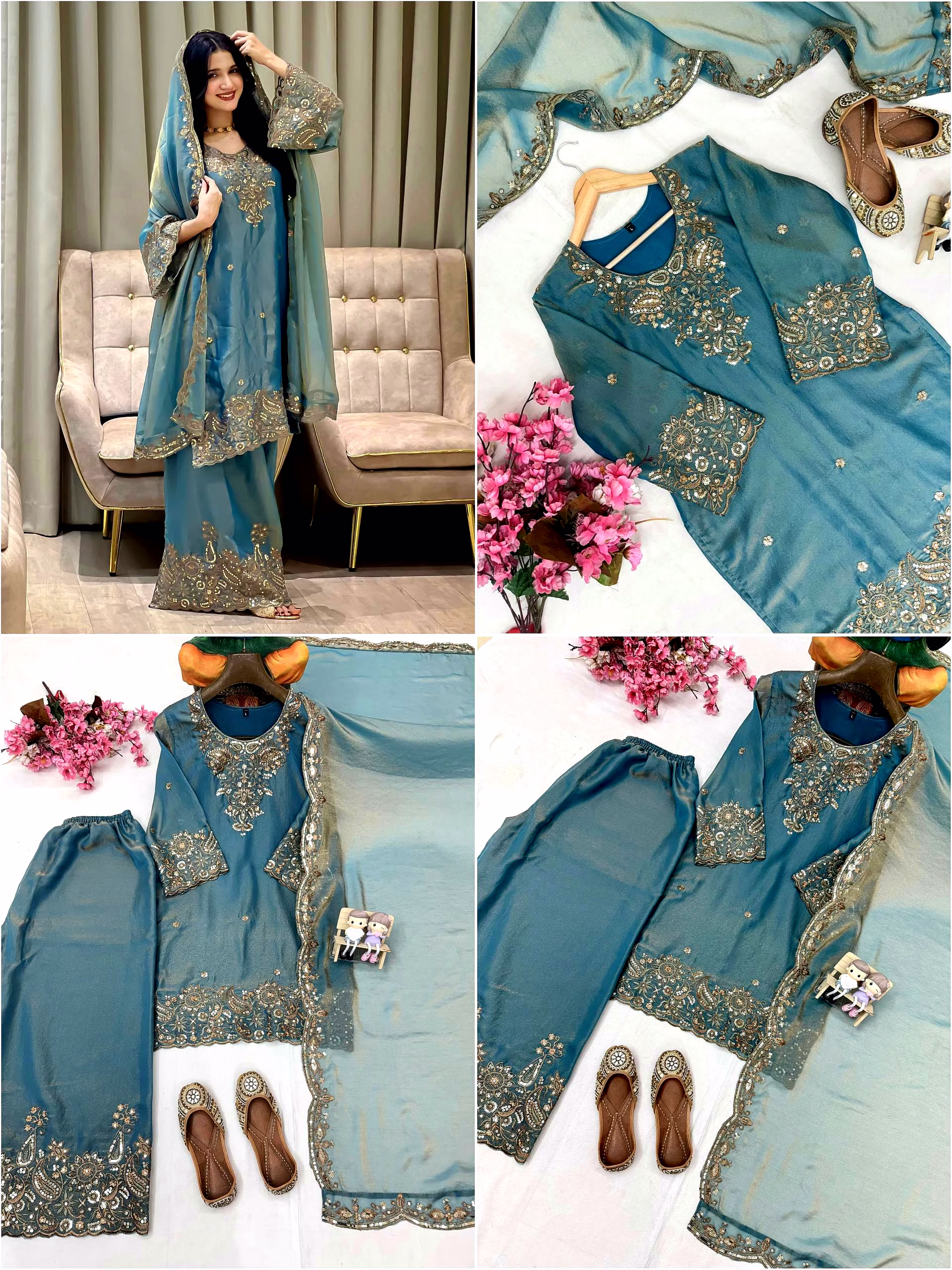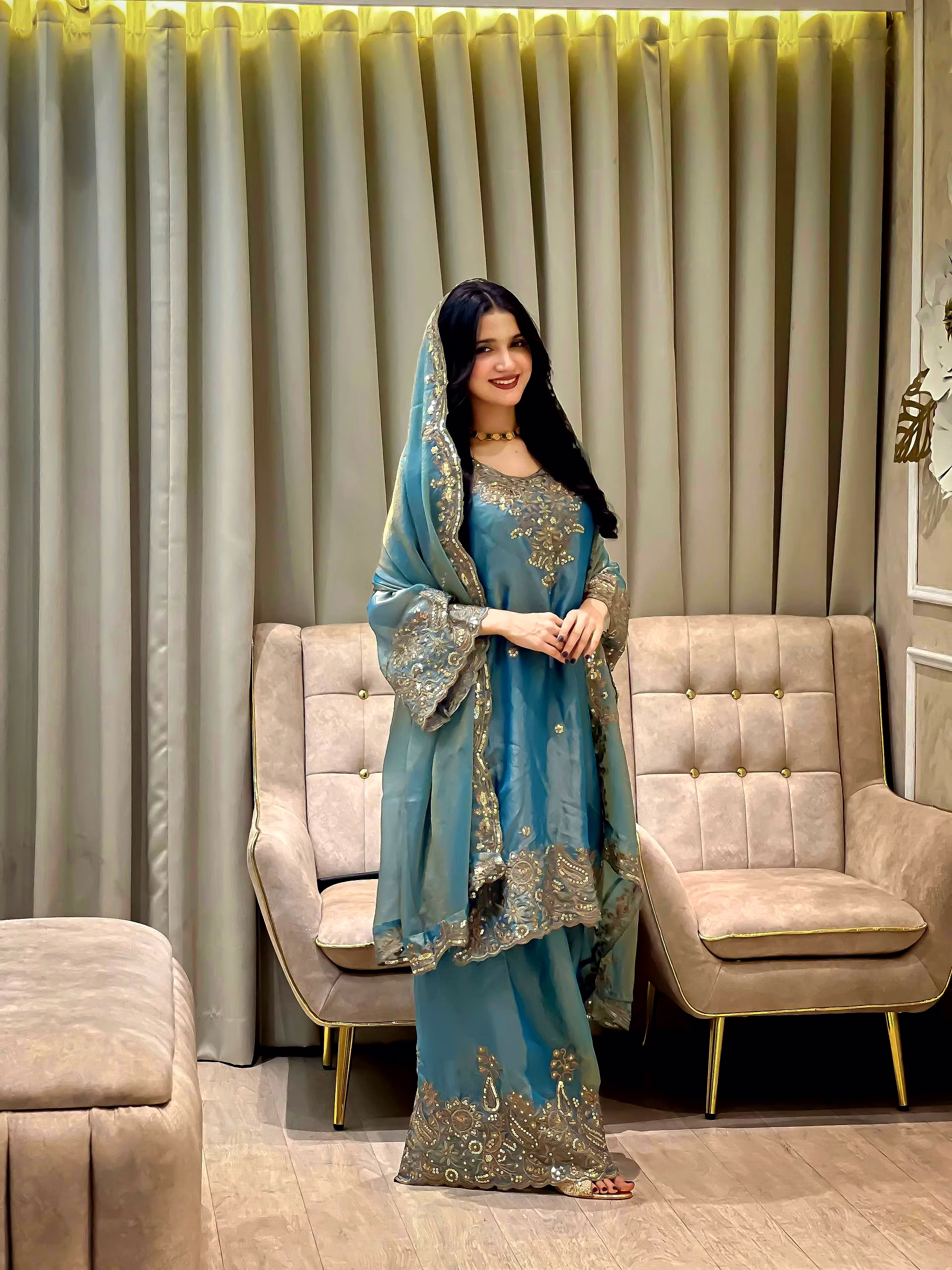 Step into a world of elegance with our Cyan Moss Silk Kurti. The intricate Sequence Work adds a touch of sophistication, making it a perfect choice for any occasion. Embrace luxury and style with this stunning piece.
