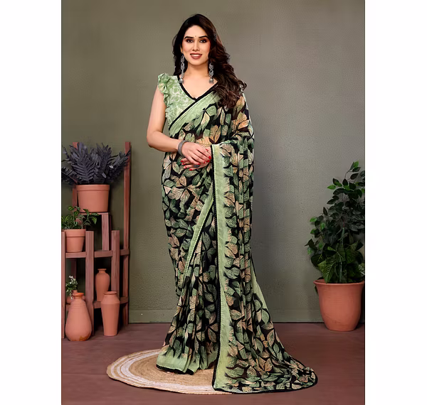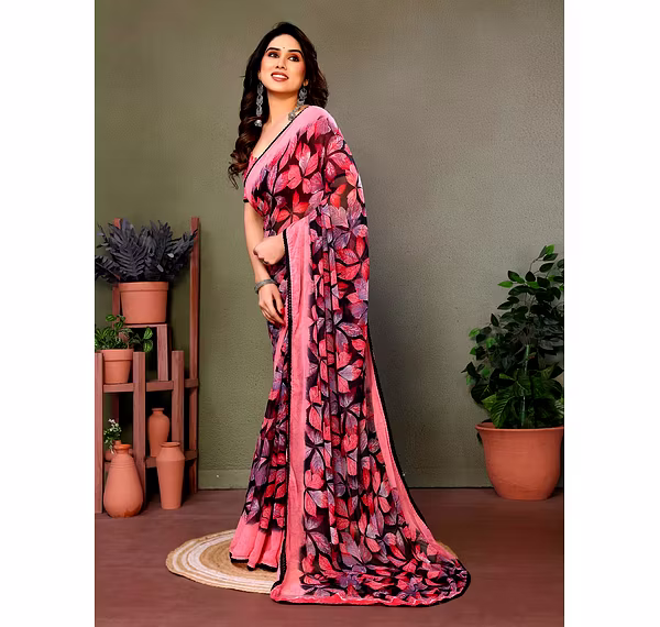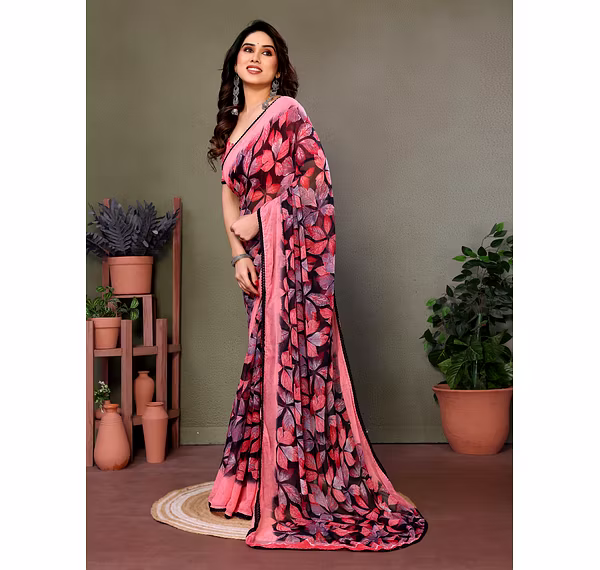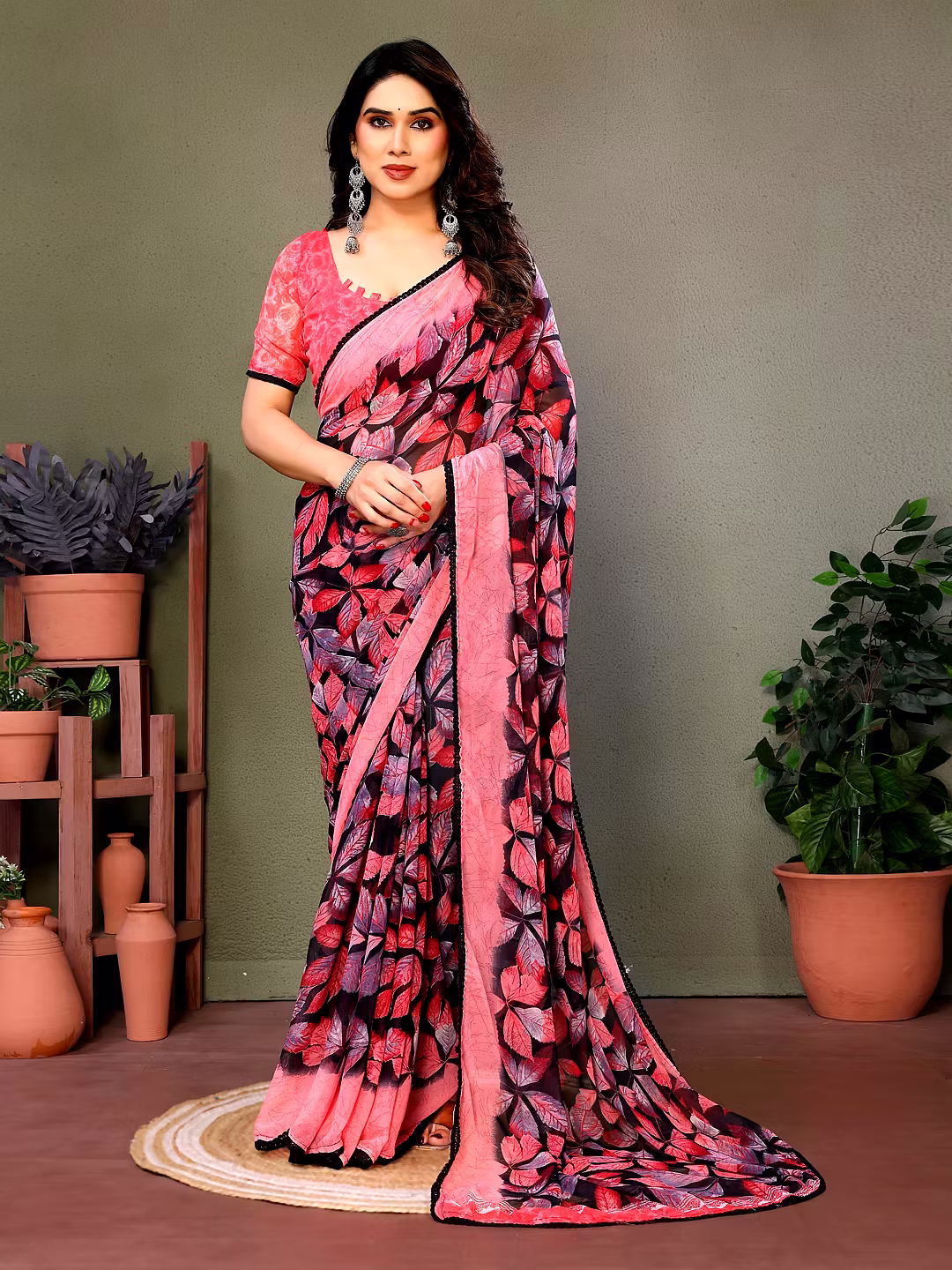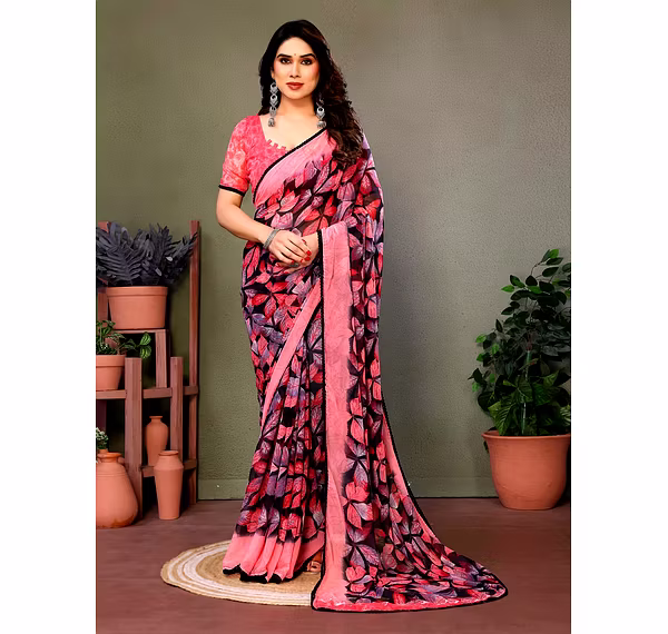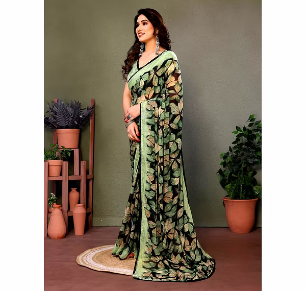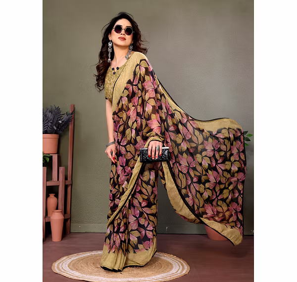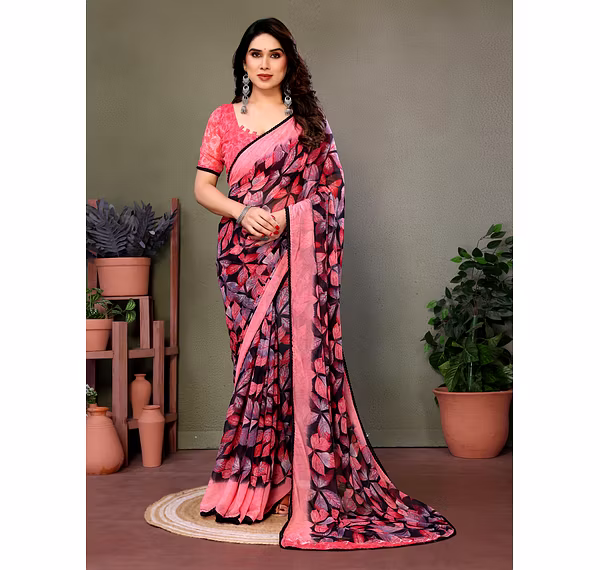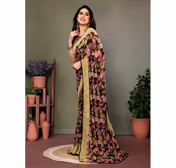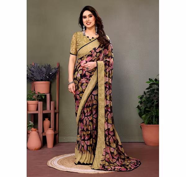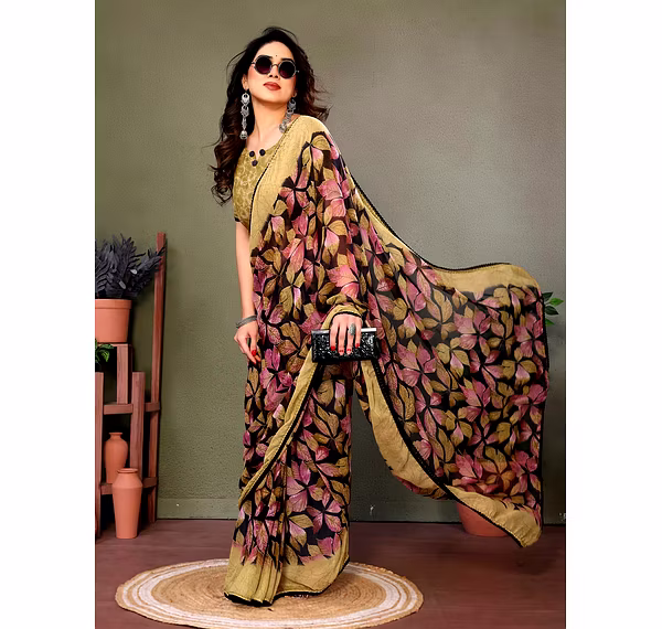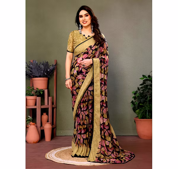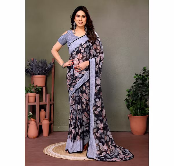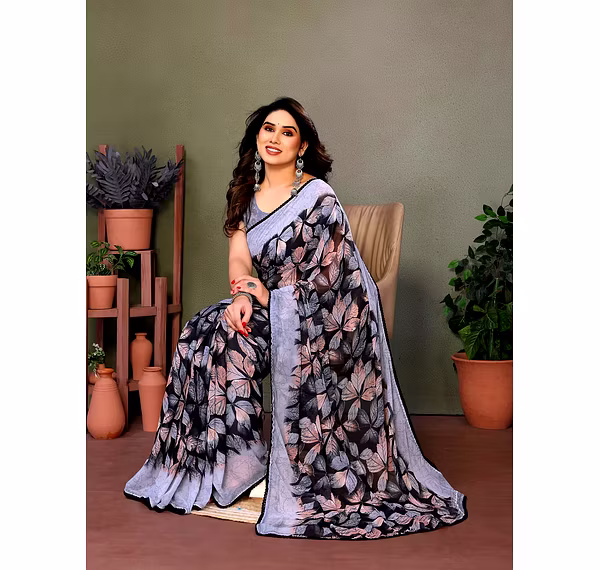 Indulge in the beauty of designer prints on our georgette saree. The intricate patterns and vibrant colors add a touch of sophistication to your look. With a range of designs to choose from, you'll find the perfect saree for every mood and occasion.